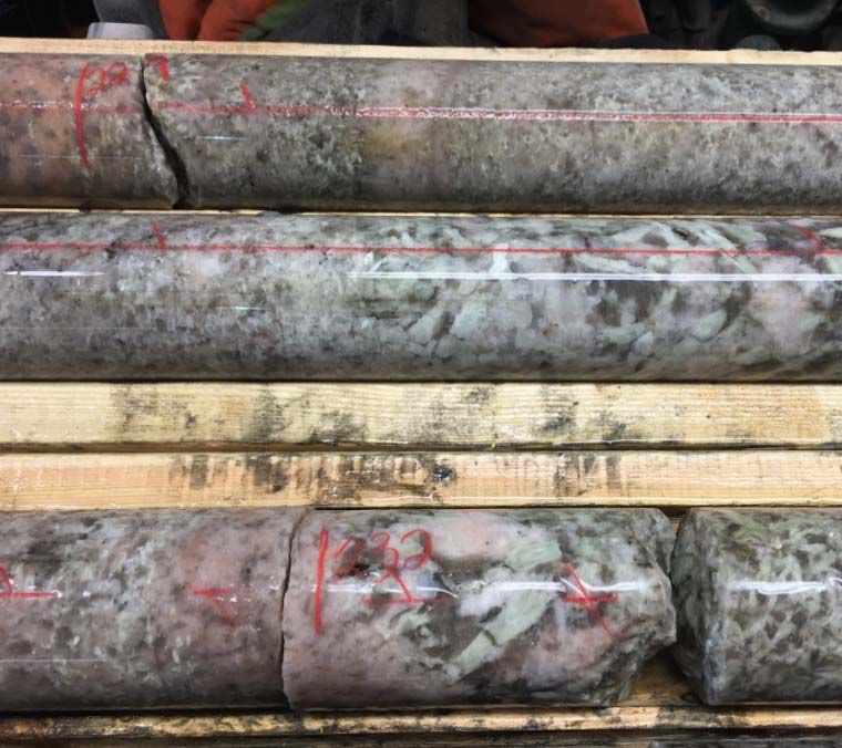 - AL-17-004 (western zone) - 11 m @ 0.88 % Li2O from 166 metres including 3 m @ 1.26 % Li2O from 166 metres; 11 m @ 1.03 % Li2O from 214 metres including 7 m @ 1.26 % Li2O from 218 metres; and