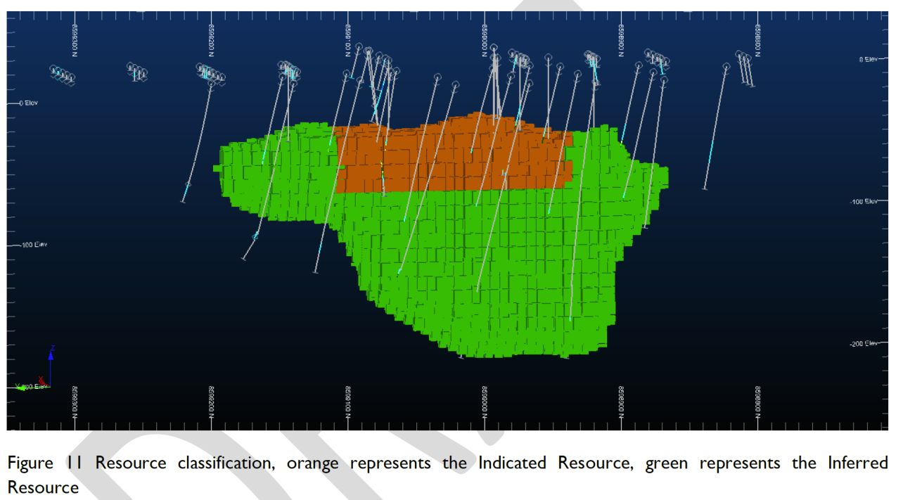 Portions of the model that have drill spacing less than 50 m (X) and 50 m (Y), have scissor drilling and where the confidence in the estimation is considered high have been classified as Indicated Mineral Resources. Areas which have drill spacing of greater than 50 m (X) and 50 m (Y) have been classified as Inferred Mineral Resources (see Figure 2 in the link below).