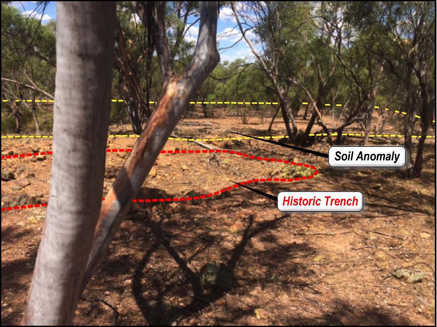 The gold in soil anomaly is located in an open woodland, abutting, then continuing southeast of the historic gold workings. The bedrock in this area is completely untested and is a priority target in the upcoming regional drilling planned on the project.