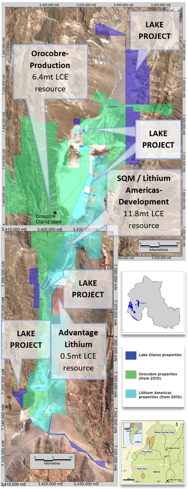 The locations of Lake's Olaroz - Cauchari Lithium Brine Project in relation to Orocobre and SQM/Lithium Americas projects are illustrated in Figure 1 in link below.