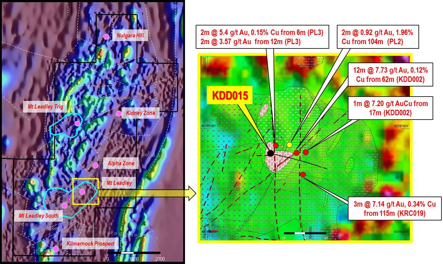 - Drill hole KDD015 intersects multiple zones of alteration and mineralisation as follows: