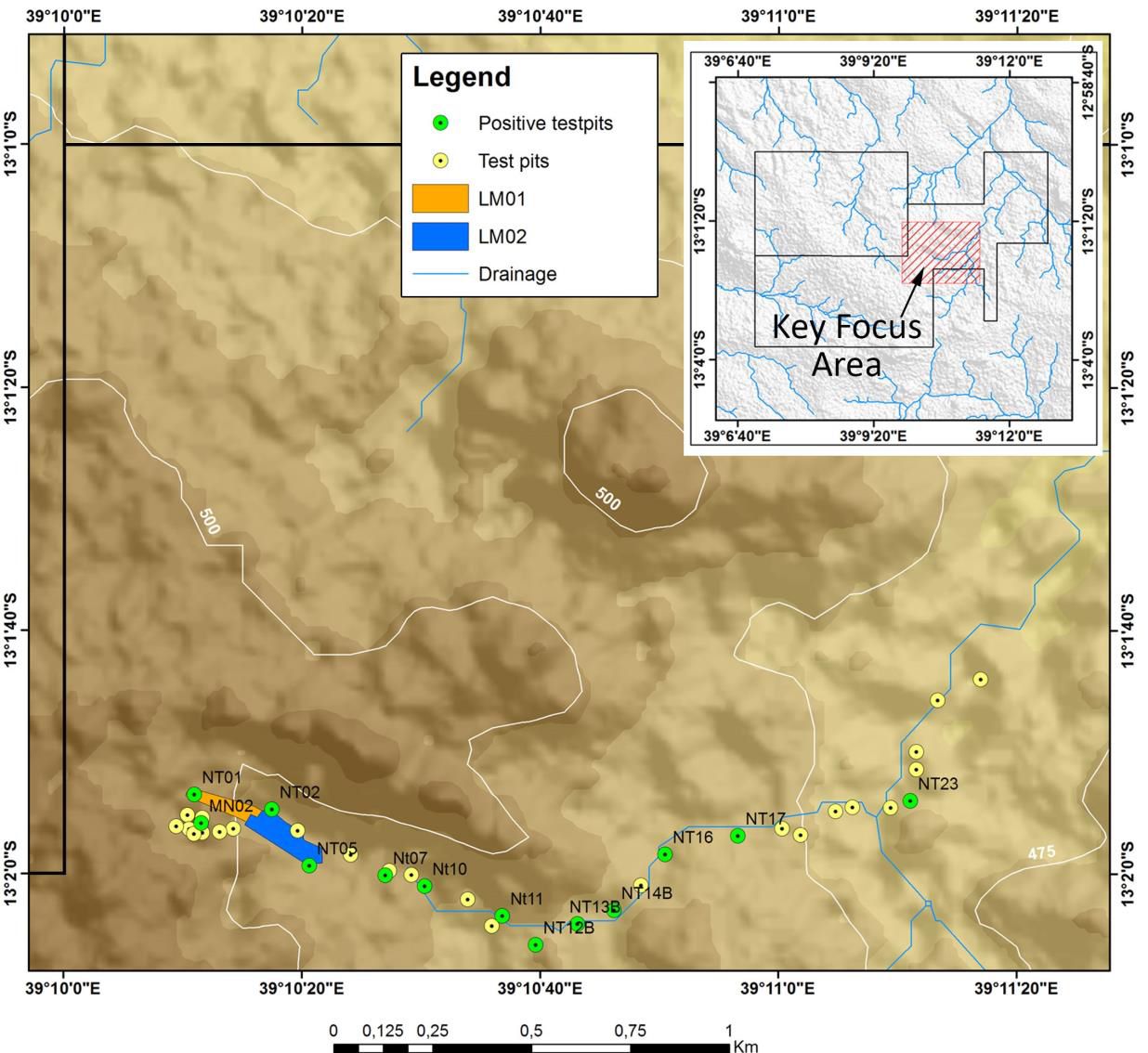 Furthermore, manual test pitting along strike from the LM01 bulk sample pit has confirmed that gravel-hosted secondary ruby mineralisation is extensive with ruby-bearing gravels recorded in test pits over a 2,200m extent (open ended, refer Figure 3 in the link below).