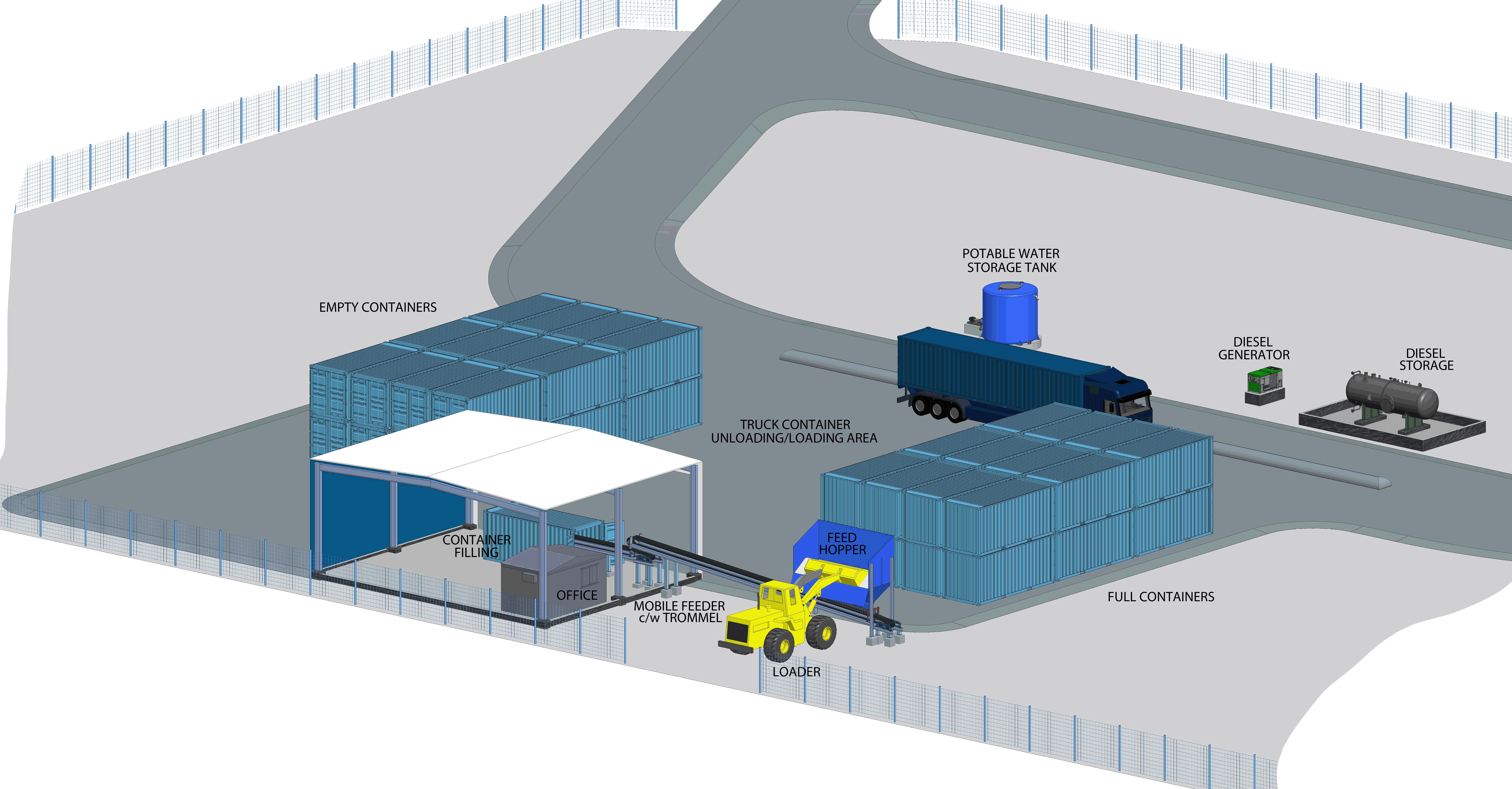 At Meckering, mined kaolin ore will be screened to a size of <12mm via a trommel screening unit. The <12mm screened ore will proceed to a housed container loading facility, where it will be fed into standard 20-foot shipping containers via a telescopic container feed conveyor. Once loaded, the shipping containers will be transported by road to the port of Fremantle, for shipment to Johor, Malaysia, the location of the Company's proposed high purity alumina (HPA) processing plant.