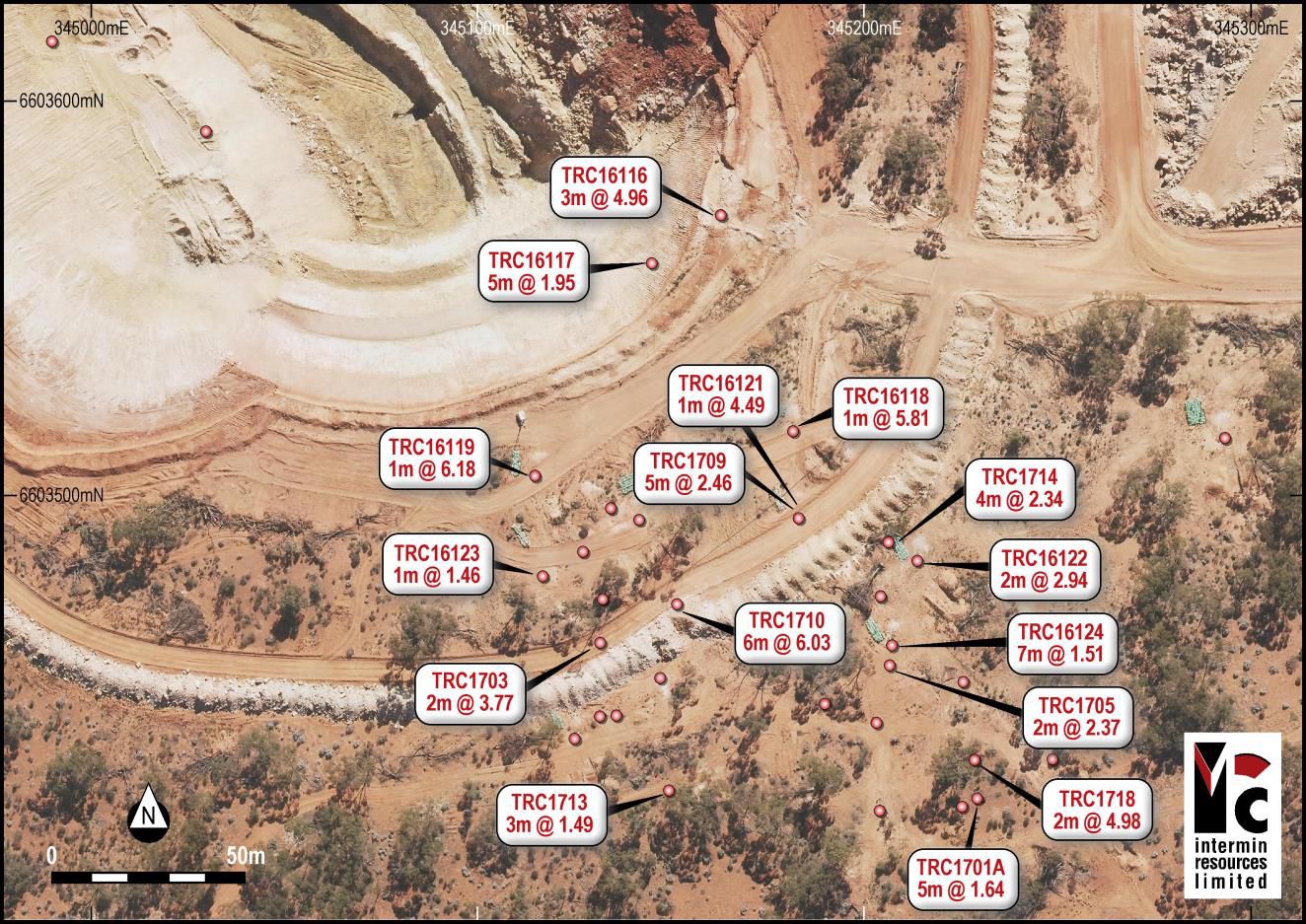 o 4m @ 2.34g/t Au from 41m - TRC1714