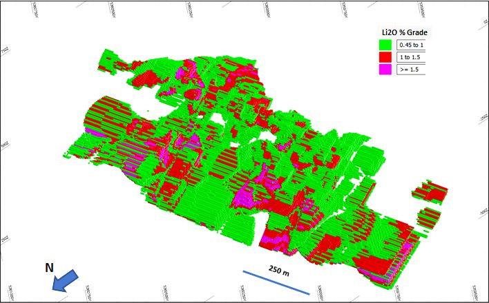 The resource has been estimated and reported in accordance with the guidelines of the Australasian Code for the Reporting of Exploration Results, Mineral Resources and Ore Reserves (JORC Code 2012). The Global JORC compliant resource estimate at 0.45% Li2O cut-off grade is tabulated (see link below).