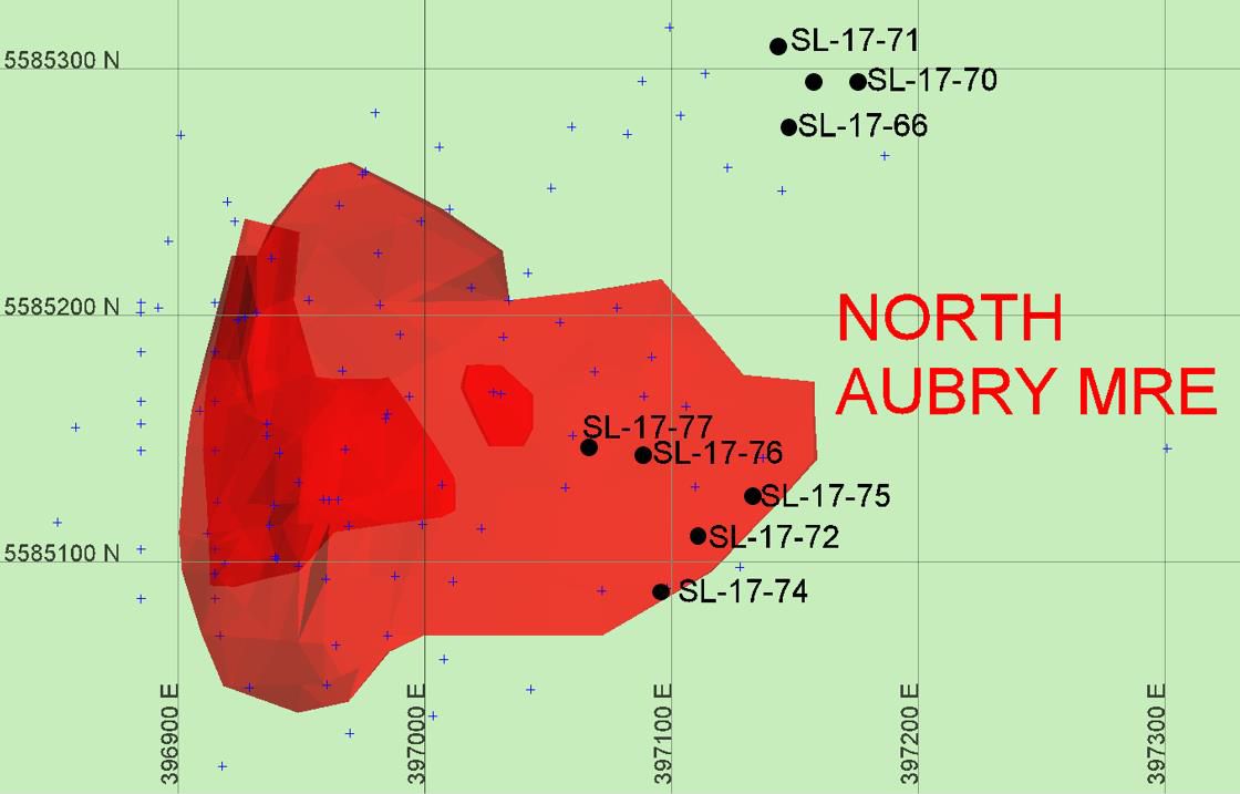 The additional eight diamond drill-holes completed at North Aubry (holes SL-17-66, SL-17-70 to SL-17-72 and SL-17-74 to SL-17-77) successfully intersected multiple spodumene-bearing pegmatites, with all of the holes now completed and logged by the Company's geological team.