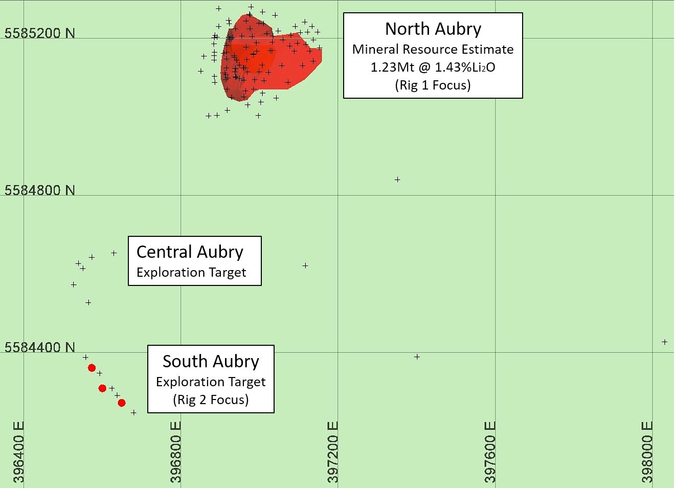 - Drilling reaffirms the presence of multiple pegmatite zones extending north-eastwards with down-plunge continuity at the North Aubry Lithium Deposit - with the mineralisation remaining open to the north, east, west and down-dip.