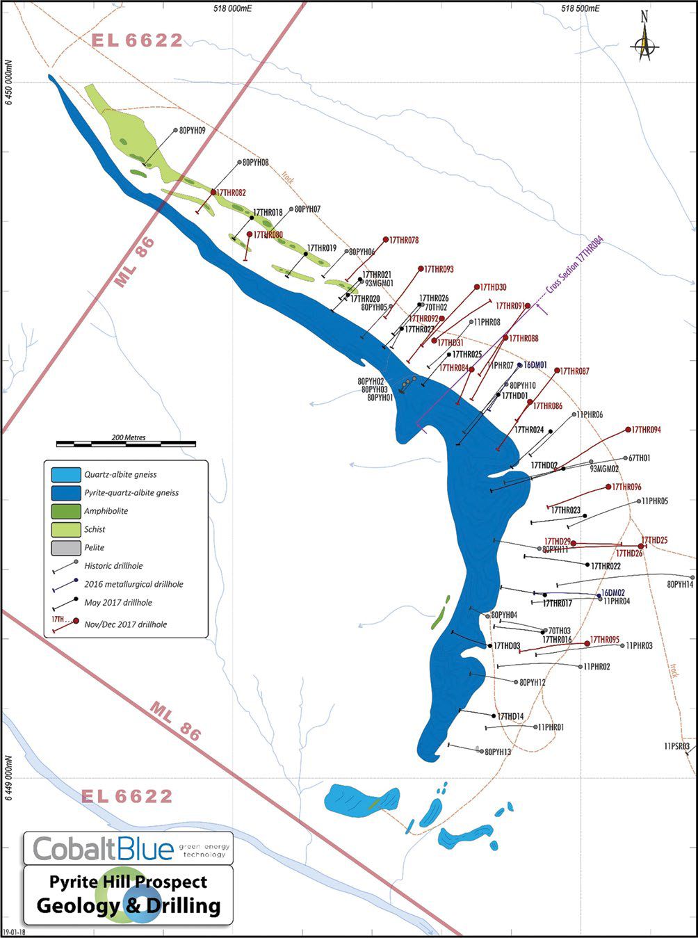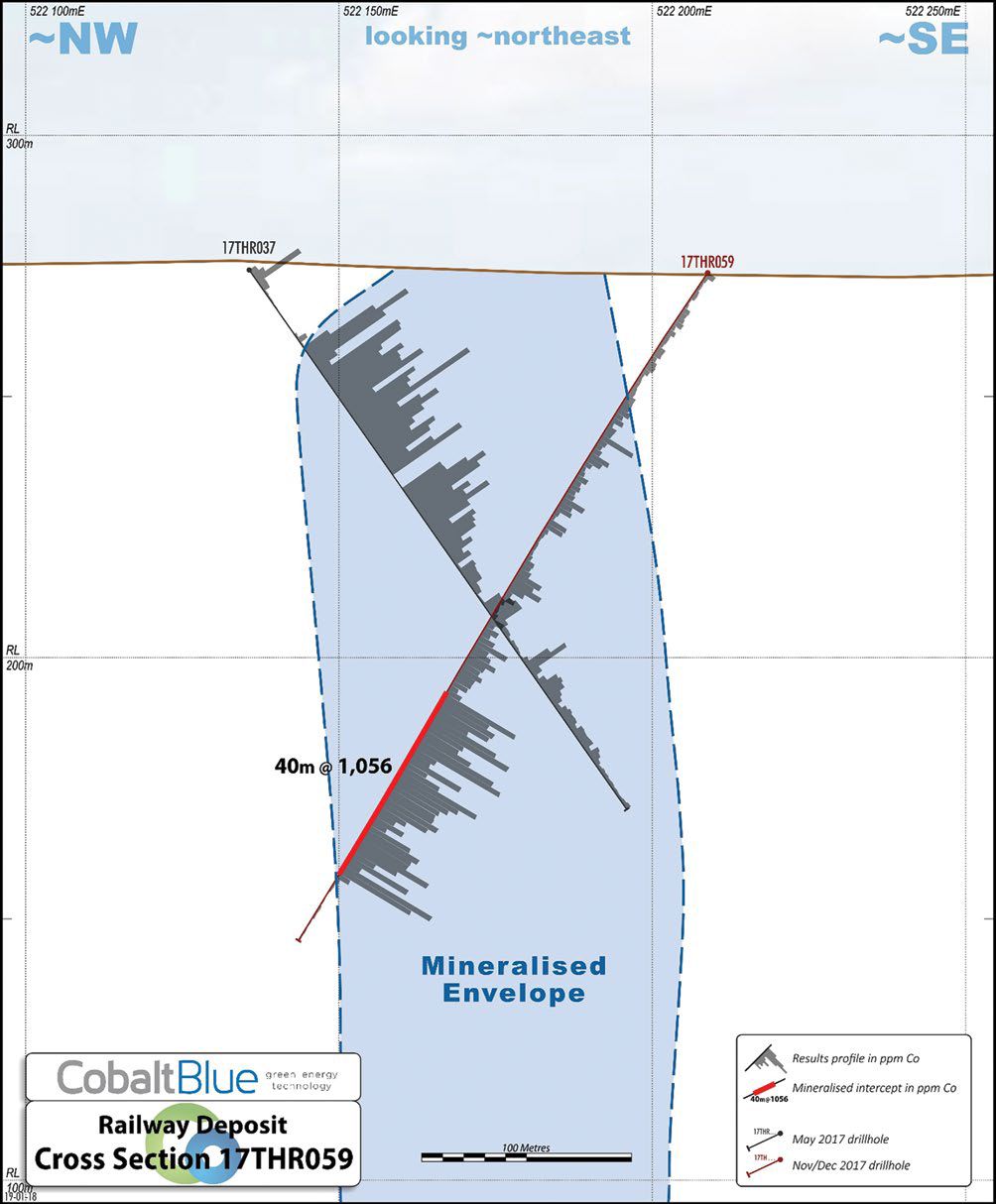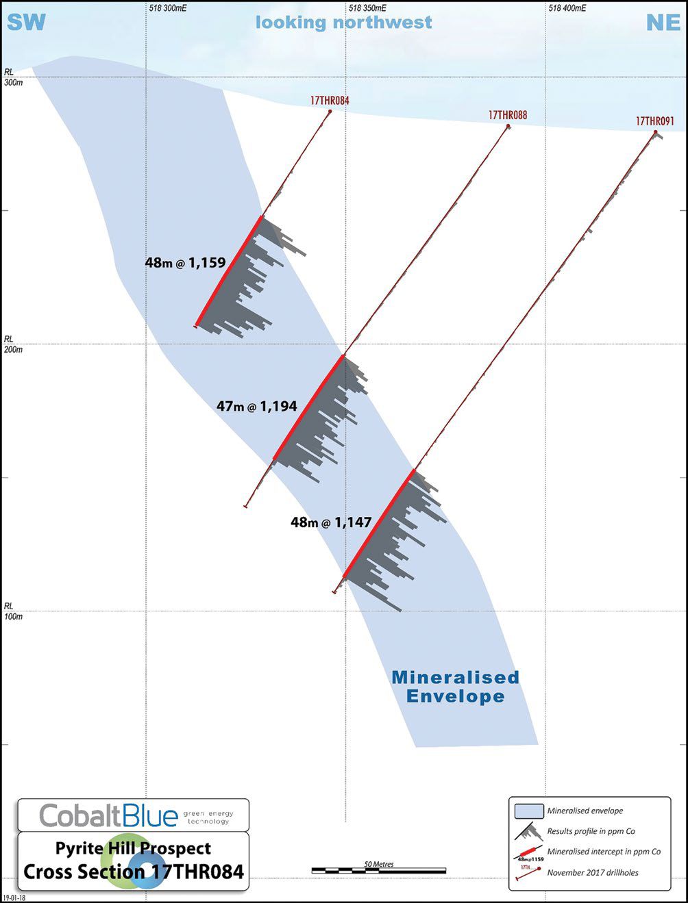 o 17THR088 - 47m at 1,194ppm Co, 11.6% S & 11.3% Fe from 107m