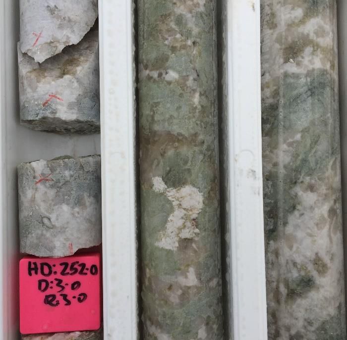 The majority of the spodumene is the typical dark greenish grey type and contains some of the pinkish spodumene in which has been identified in previous drilling (see Photos 1-3 in link below).