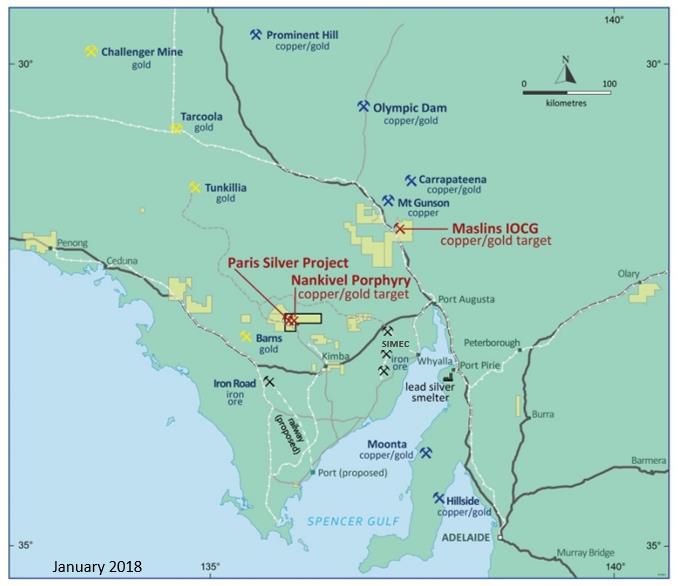 The Company has applied an innovative strategy that has developed multiple ideas and targets giving Investigator first-mover status. These include: the Paris silver discovery; recognition of other epithermal fields and the associated potential for porphyry copper-gold of Olympic Dam age; extending the ideas developed at Paris-Nankivel and using breakthrough government Magneto-Telluric surveying to rejuvenate targeting with the Maslins IOCG target as the next priority drill target.
