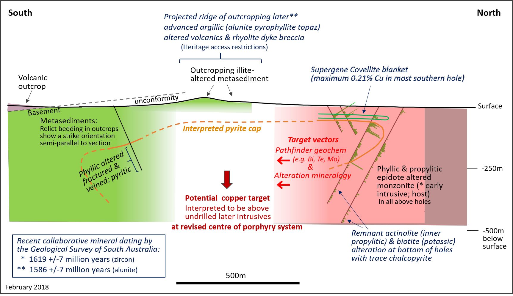 - The pyritic metasediment can be interpreted as the southern pyritic halo to Nankivel porphyry system. Hence the location of central copper-prospective zone is revised.