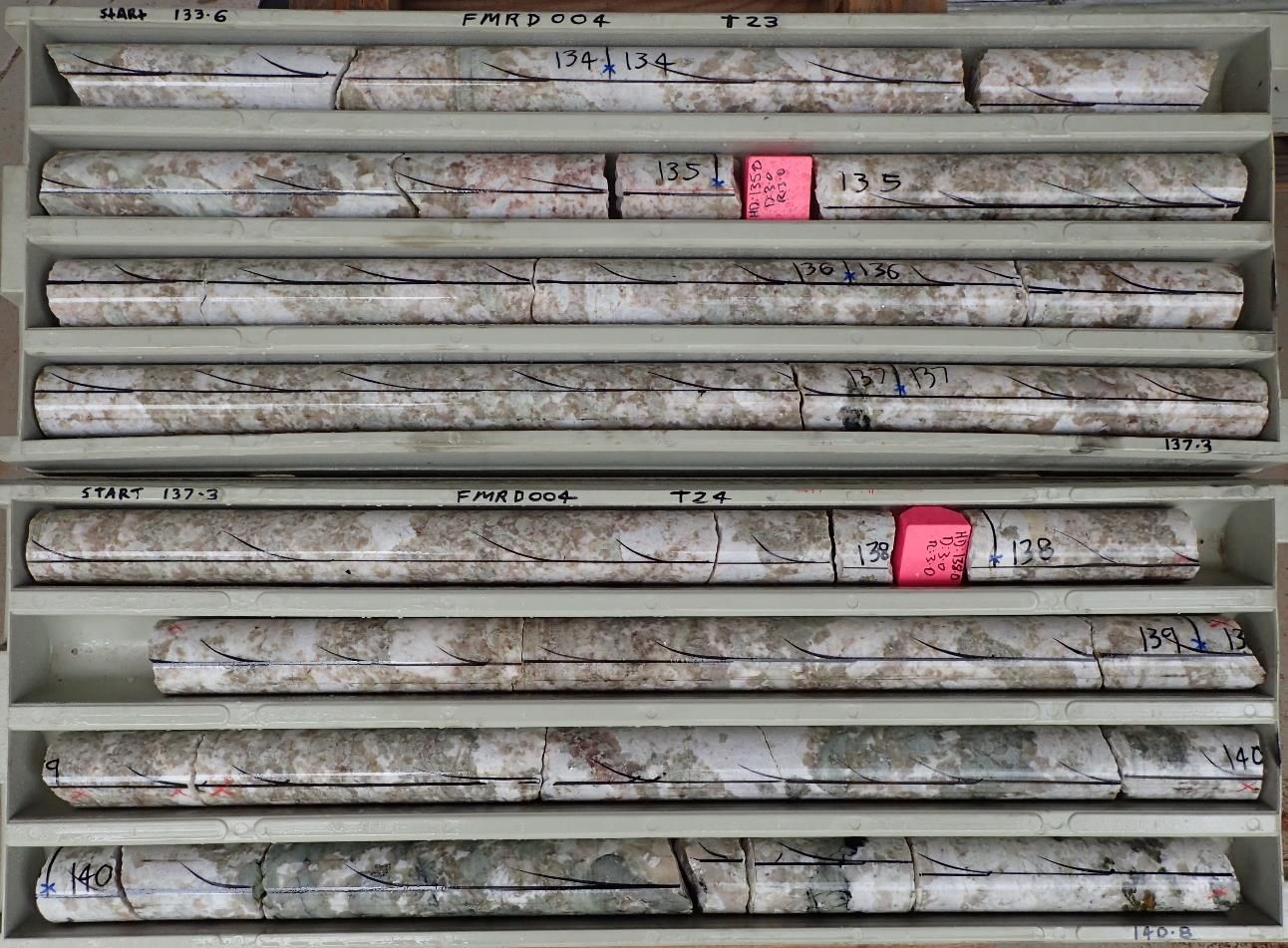 The visual spodumene content of drill core from FMRD004 is comparable to that from recently drilled FMRD007 that has now been cut and delivered to the laboratory for assay (see Photo 1 in link below and refer ASX - 19/2/18).