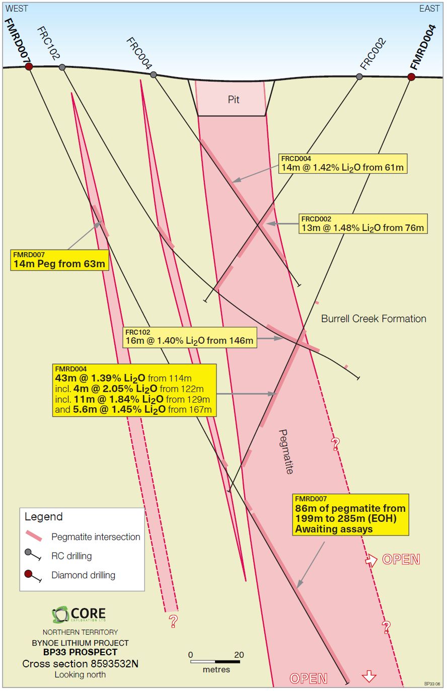 ASX:CXO) ("Core" or the "Company") is pleased to announce a new high-grade intersection of 42.9m @ 1.39% Li2O at the BP33 Prospect within Core's 100%- owned Finniss Lithium Project near Darwin in the NT.