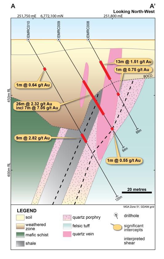 o EMRC008: 13m @ 1.5 g/t Au from 17m