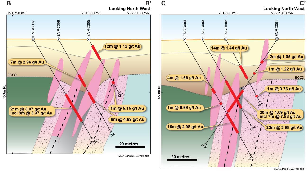 o EMRC005: 12m @ 1.1 g/t Au from 5m