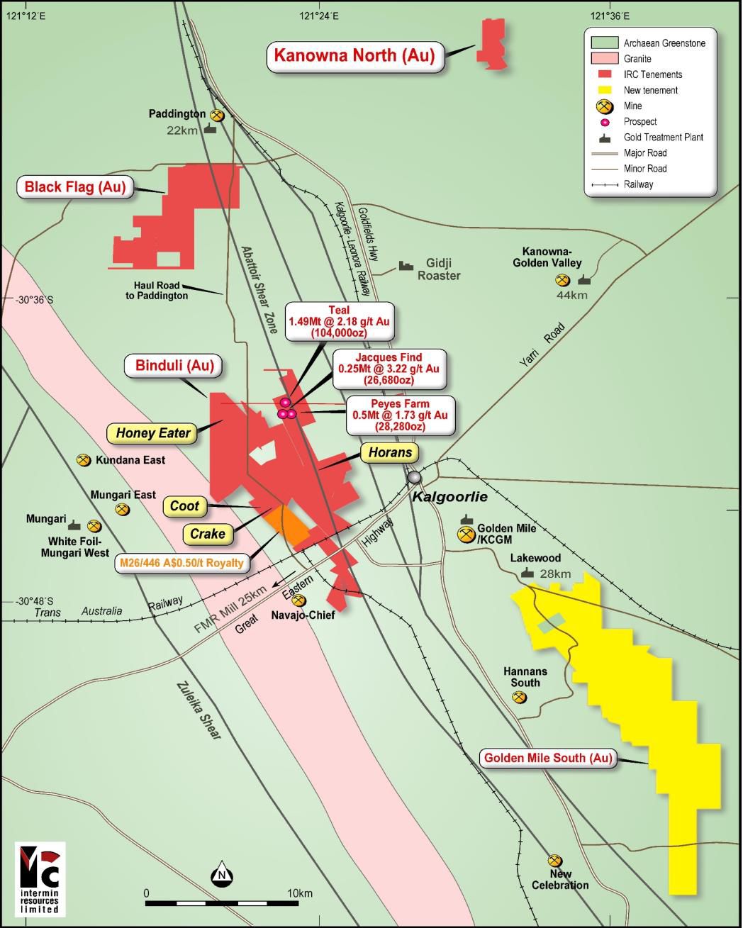 Intermin owns a $0.50/t mining royalty that relates to ore mined and treated from Mining Lease M26/446 located approximately 10km west of Kalgoorlie-Boulder in Western Australia (see Figure 1 in link below). The Company entered into a Deed for the sale of M26/446 in 2001 and it is now owned by Norton Gold Fields Ltd ("NGF") which was delisted from the ASX on 1 July 2015.