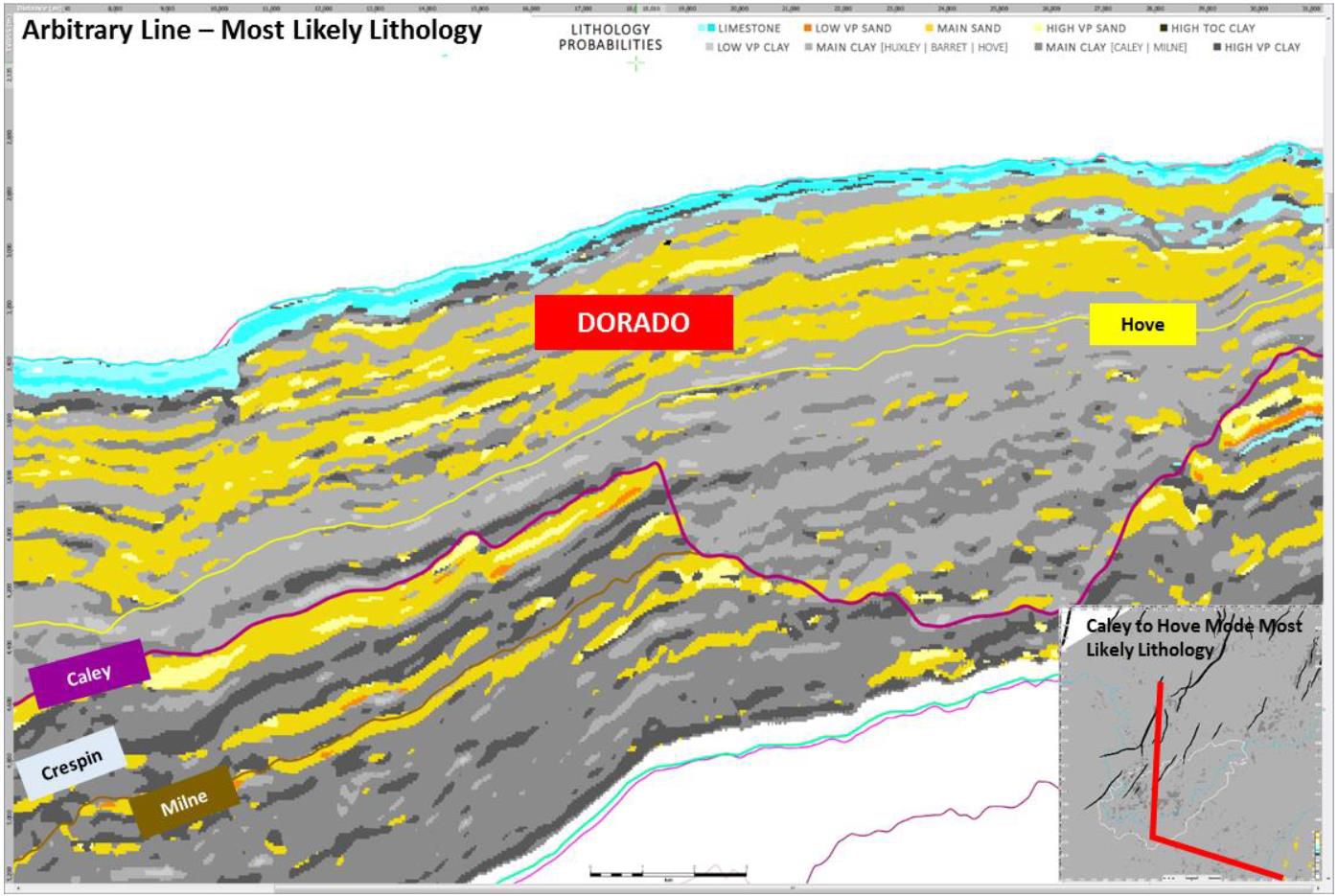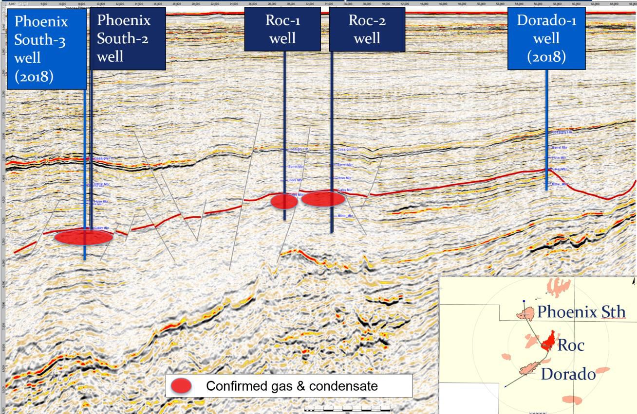 The primary objective for the Dorado-1 well is to assess the gas and liquids potential in the Caley Member with the well being less than 20km from and updip of the successful Roc-1 and Roc-2 wells.