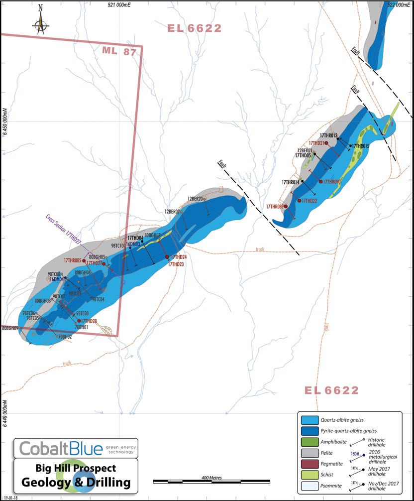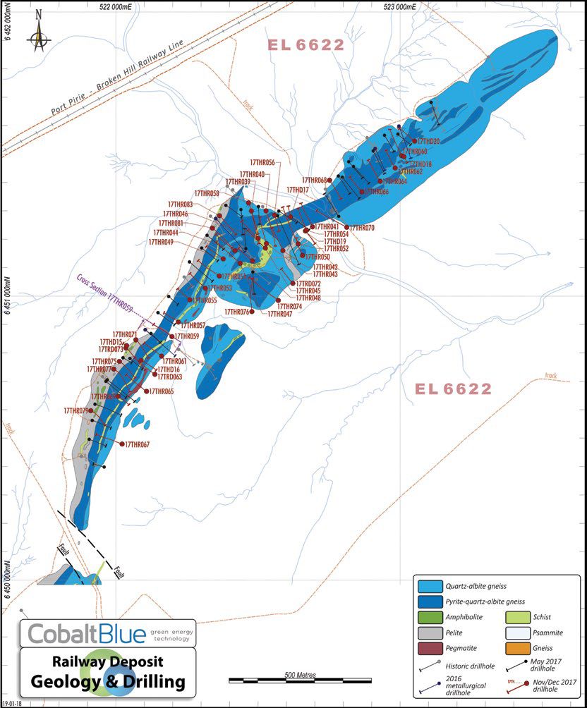 - Mineral Resource Estimate of 72Mt at 852ppm cobalt (Co), 9.3% sulphur (S) & 10% iron (Fe) for 61.5Kt contained cobalt (at a 500ppm cobalt cut-off) - ASX Announcement @ 19 March 2018.