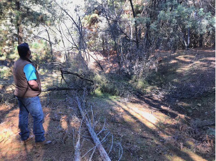 Exposure at Black Bullock is poor, with very little outcrop beyond the extent of the workings. Indeed, the workings are greatly degraded and are covered by pine plantations, from which there have been several generations of harvest. This has resulted in near obliteration of the historic workings in some areas.