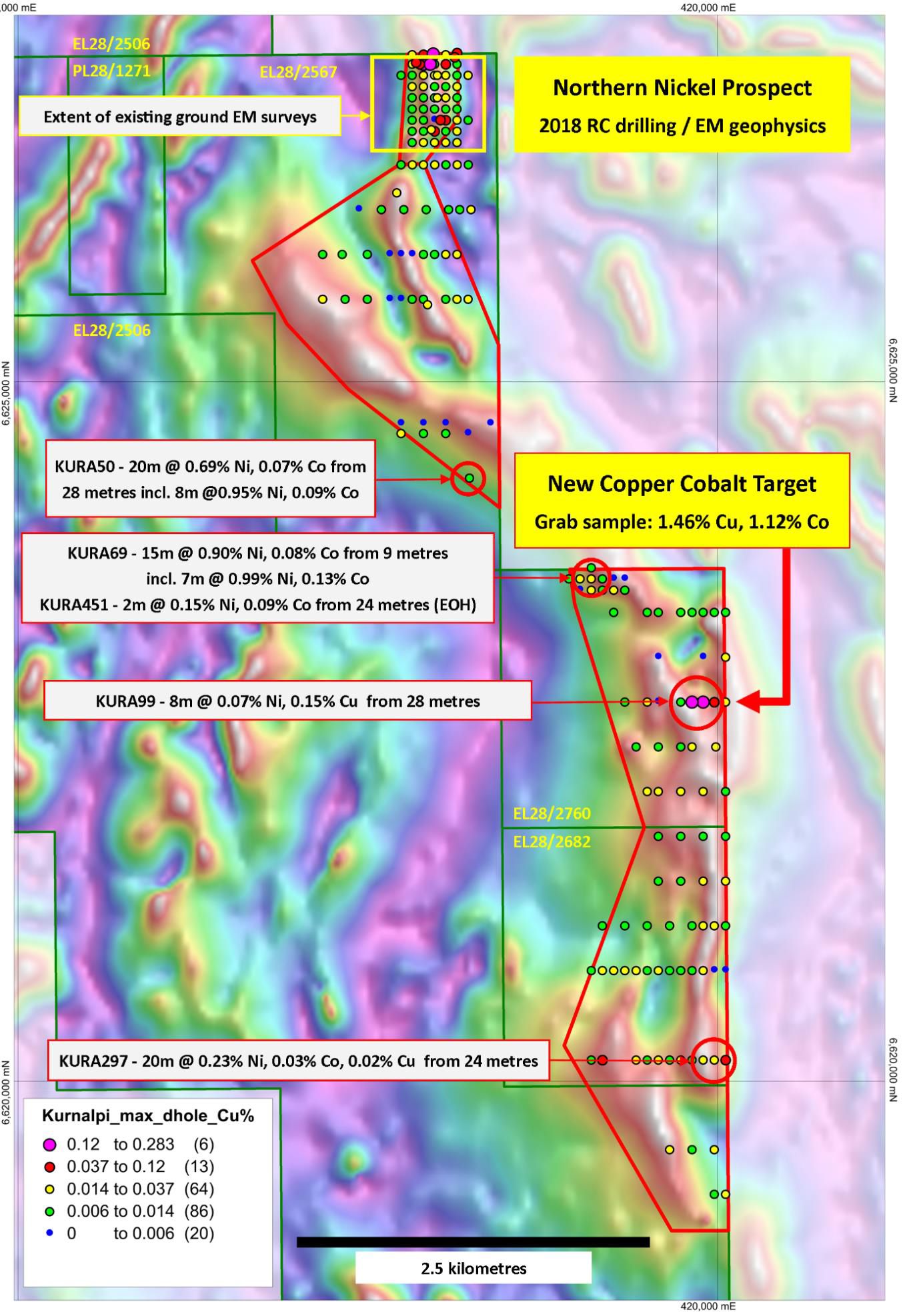 "Nickel sulphide exploration is difficult and takes patience but importantly our work to date has demonstrated that nickel sulphides are present at Kurnalpi within favourable ultramafic rocks. The identification of a new copper cobalt target is highly encouraging and reinforces the project's potential".