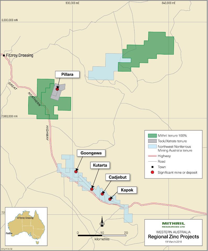 In the West Kimberley, Mithril is exploring for zinc on the Billy Hills Project which lies adjacent to the previously mined Pillara Zinc Deposit.