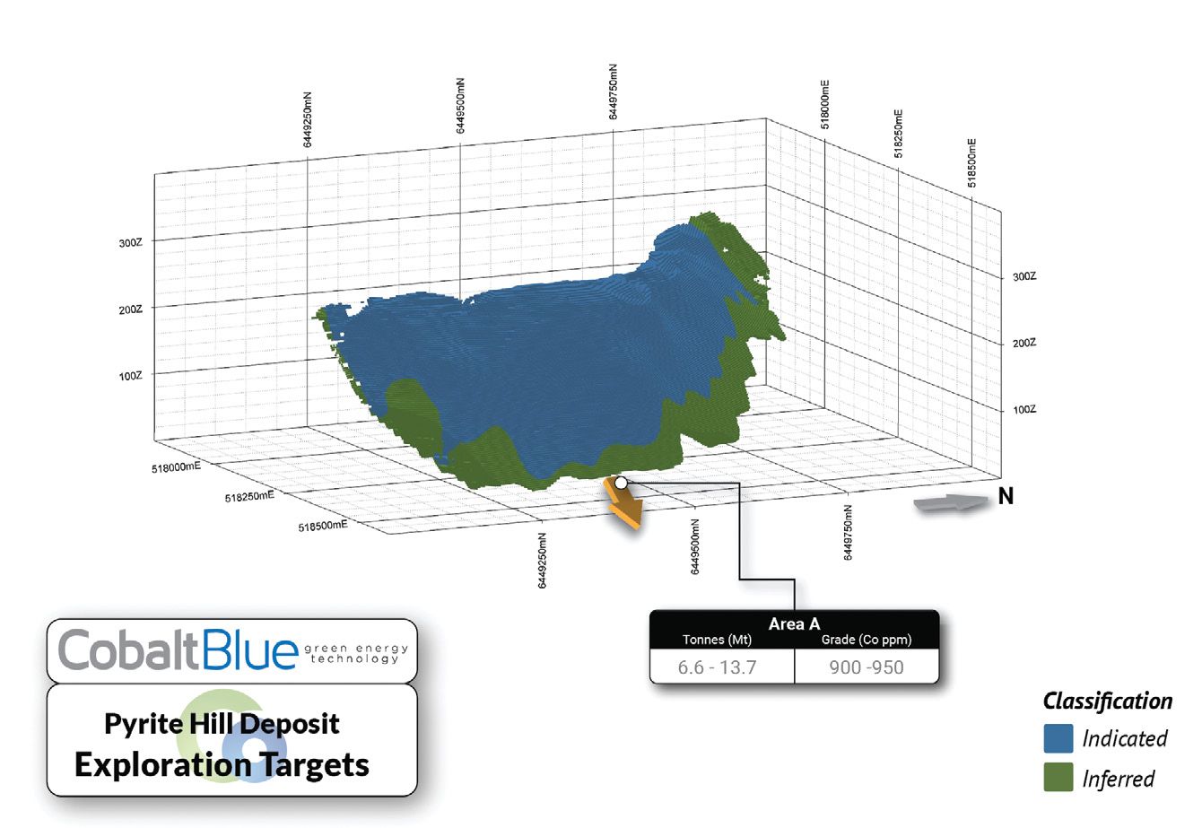 The tenements host three large tonnage cobalt-bearing pyrite deposits with a reported Mineral Resource of 72 million tonnes at 852ppm cobalt (Co), 9.3% sulphur (S) & 10% iron (Fe) for 61Kt contained cobalt (at a 500ppm cobalt cut-off).