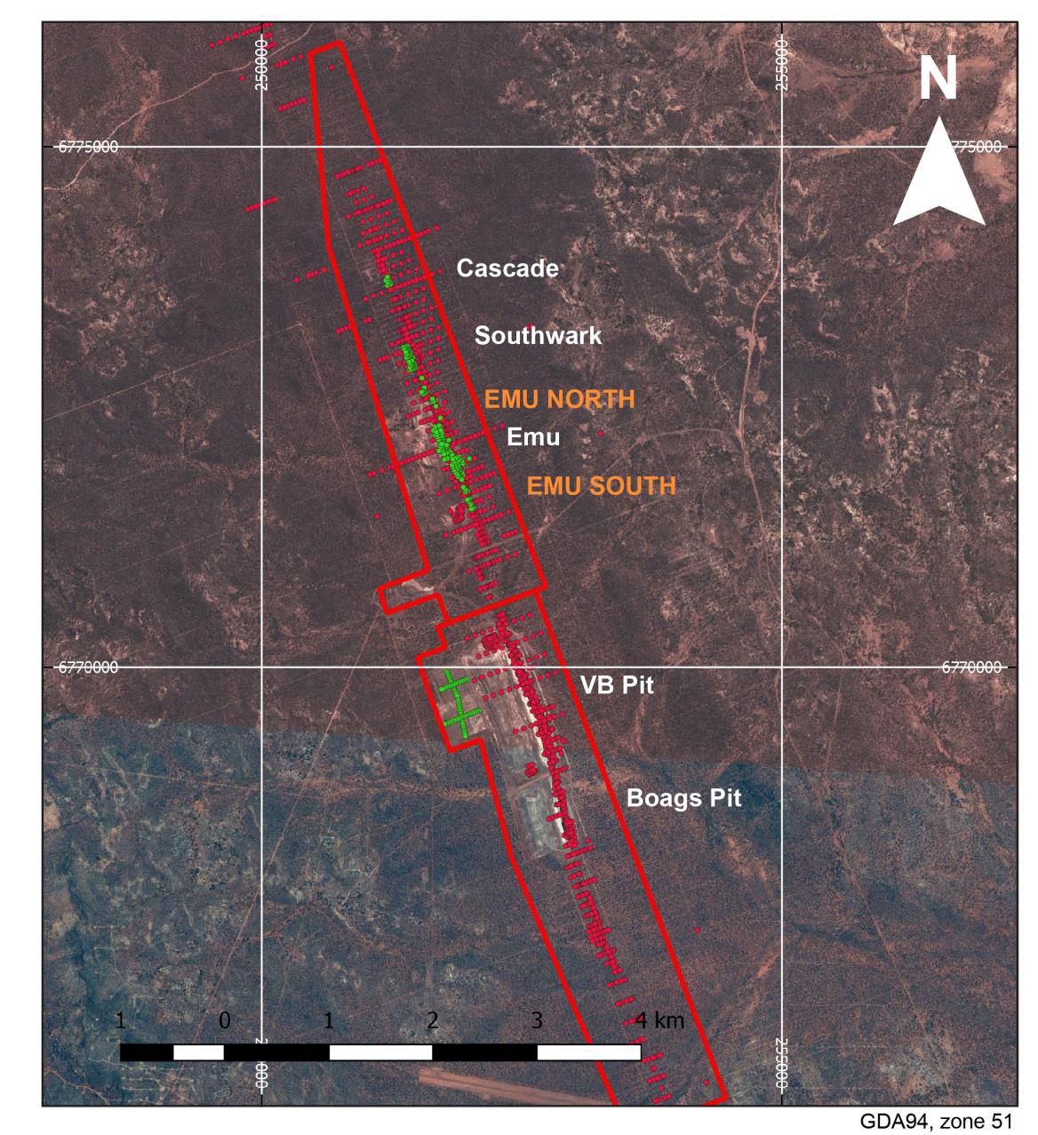 - Resource upgrade includes 1,772 metres of new RC drilling defining extensions to the south and north of the Emu deposit