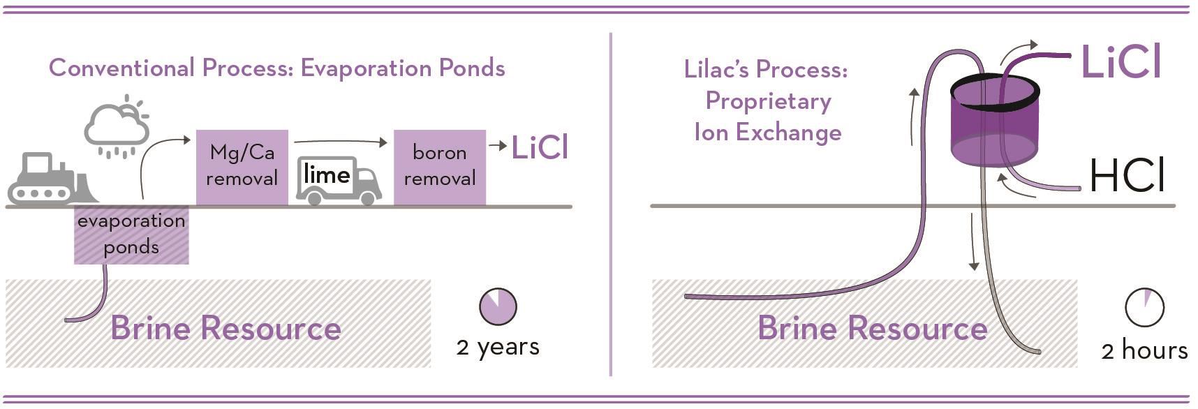 - Lilac process shows production of greater than 3000 mg/L lithium from average brine samples in a few hours.