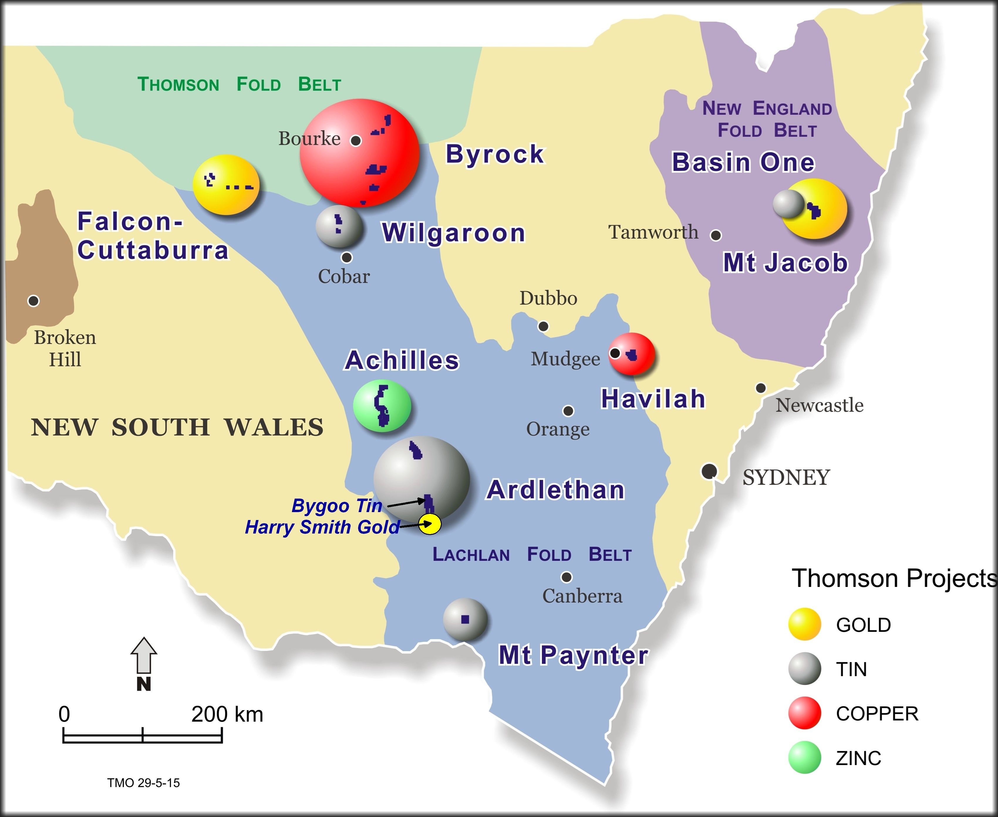 Thomson Resources Ltd (ASX:TMZ) is an NSW active mineral explorer. Thomson has several tin projects (including an advanced project near Ardlethan), as well as gold, copper and zinc targets in a range of settings. Thomson has a good record of discovery, with multiple new Intrusion-Related Gold (gold with copper, lead, zinc, molybdenum, tungsten) systems discovered in the Thomson Fold Belt in the NW of the state.