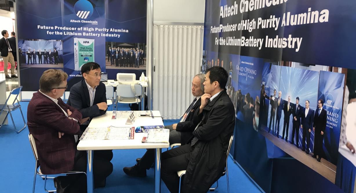 Altech was a recent exhibitor at the Battery Japan 2019 conference in Tokyo, Japan. The Company continues to work with its off taker, Mitsubishi Corporation to build brand and product awareness. Delegates at the conference reported strong demand for HPA from South Korea and Japan. South Korean battery manufacturers like LG Chemicals produce around 10 different types of coated separators and use between 3,000tpa - 4,000tpa of HPA, its primary HPA suppliers appear to be Sumitomo Chemicals and Nippon Light Metal. Other major lithium-ion battery producers in South Korea include SK Innovation and Samsung SDI, Samsung is also a major user of HPA for its coated separators.