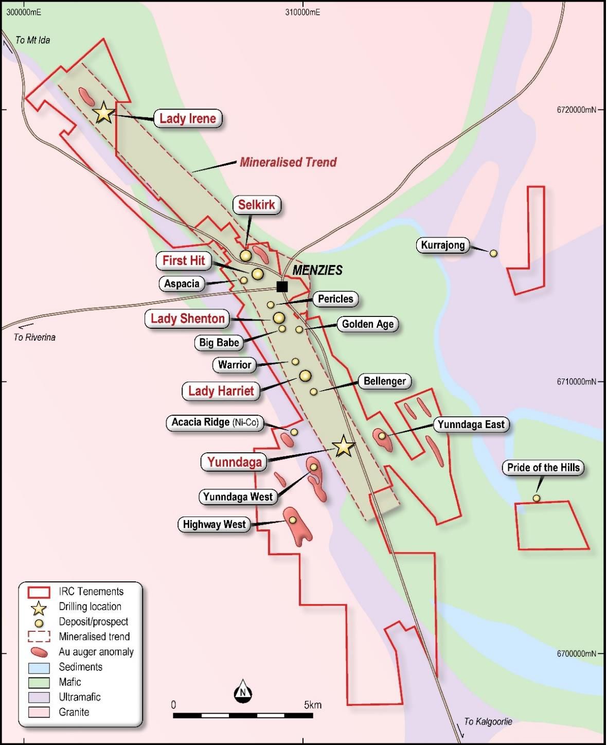 - New discovery and resource extension drilling has commenced at Lady Irene as part of the 2019 Kalgoorlie and Menzies regional program