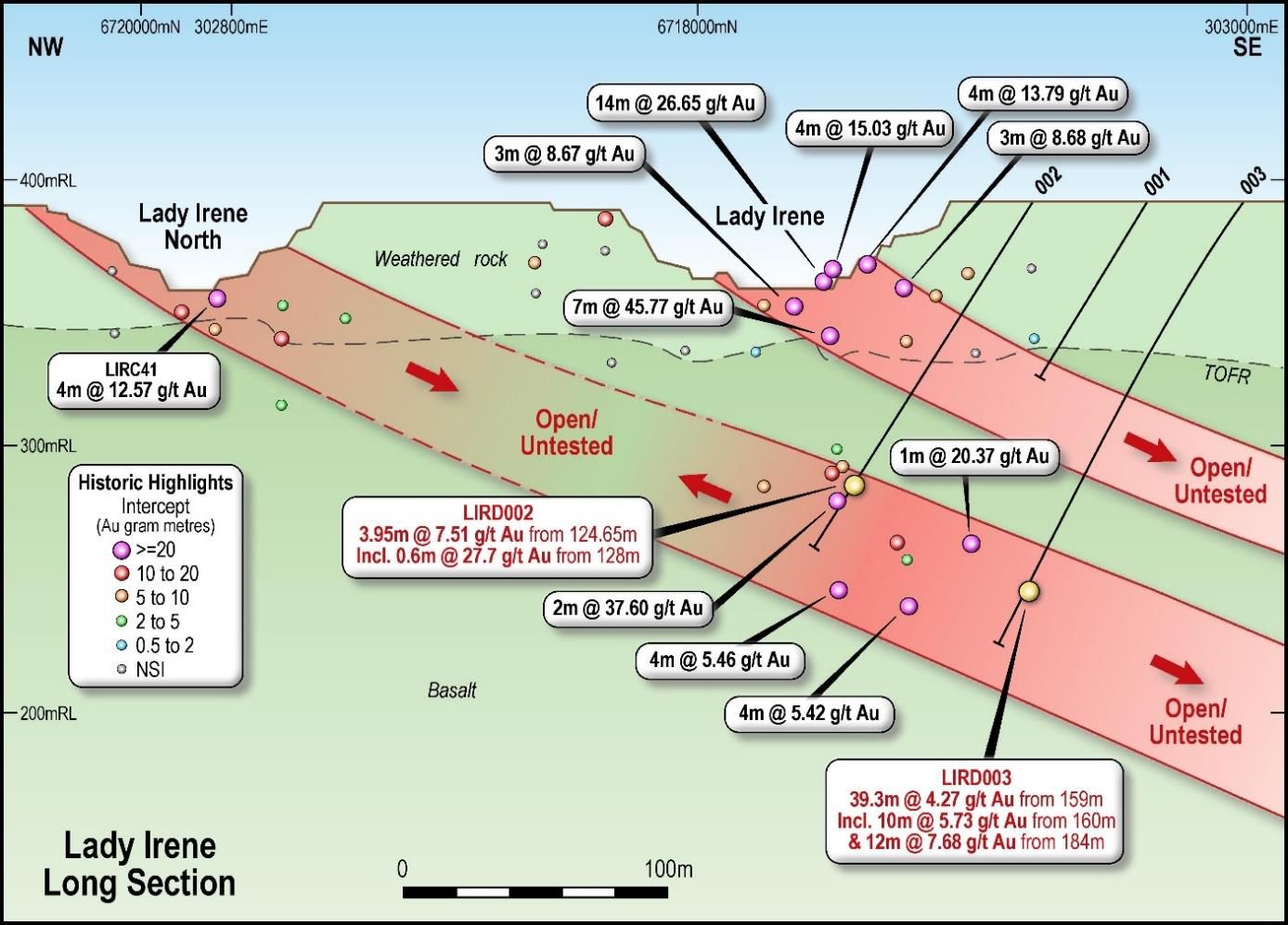 As announced to the ASX on 19 February 2019, results from the most recent drilling included significant results at the Lady Irene prospect (see Figures 2 and 3 in link below) including: