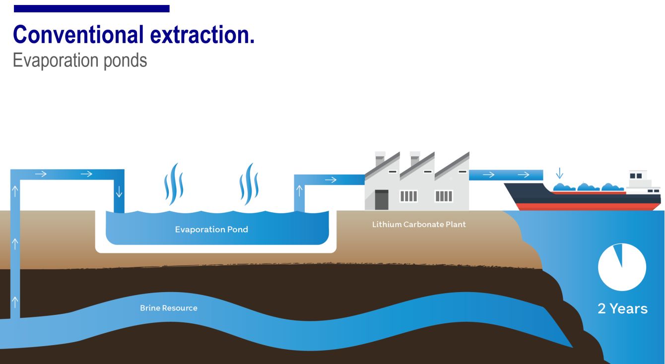 This compares favourably with conventional brine operations in South America, which use evaporation that requires a lengthy 9 to 24 month waiting period for the process to produce a suitable lithium brine concentrate for processing, and have lithium recoveries typically below 50%.