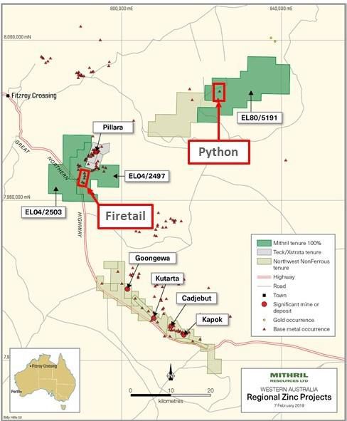 Of the many targets identified to date, the Firetail and Python prospects have emerged as priority targets for immediate follow-up (see Figure 2 in link below - and see Mithril's March 2019 Quarterly Report and ASX Announcement dated 15 February 2019 for all technical details including JORC information).