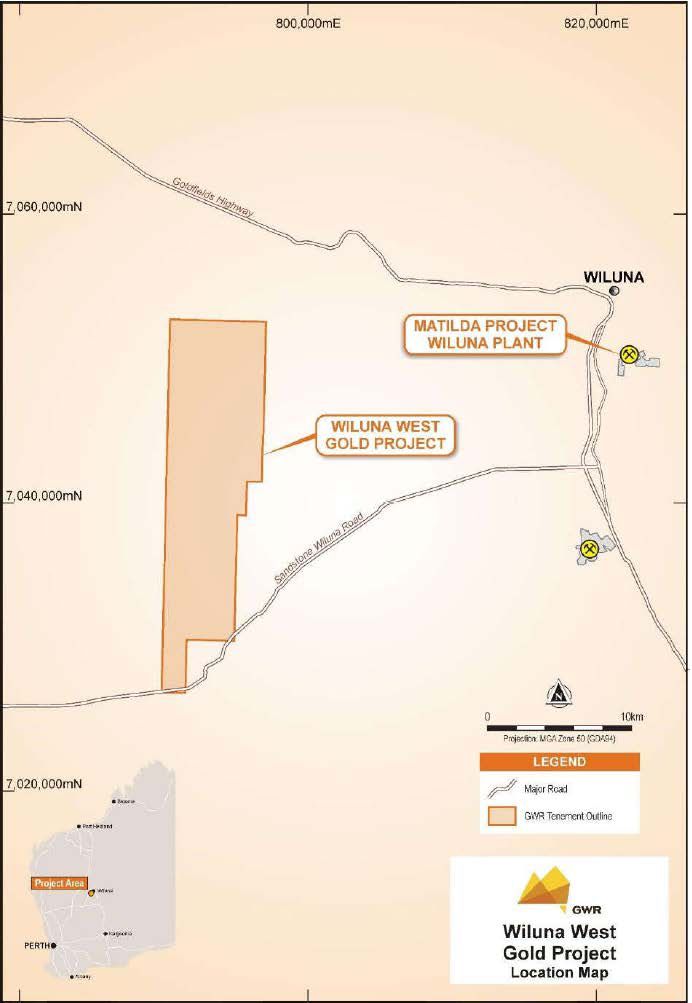 - Pathway to production for GWR's existing resource of 289,000oz (4.2 million tonnes at 2.2 g/t Au), located 40km from the Wiluna processing plant