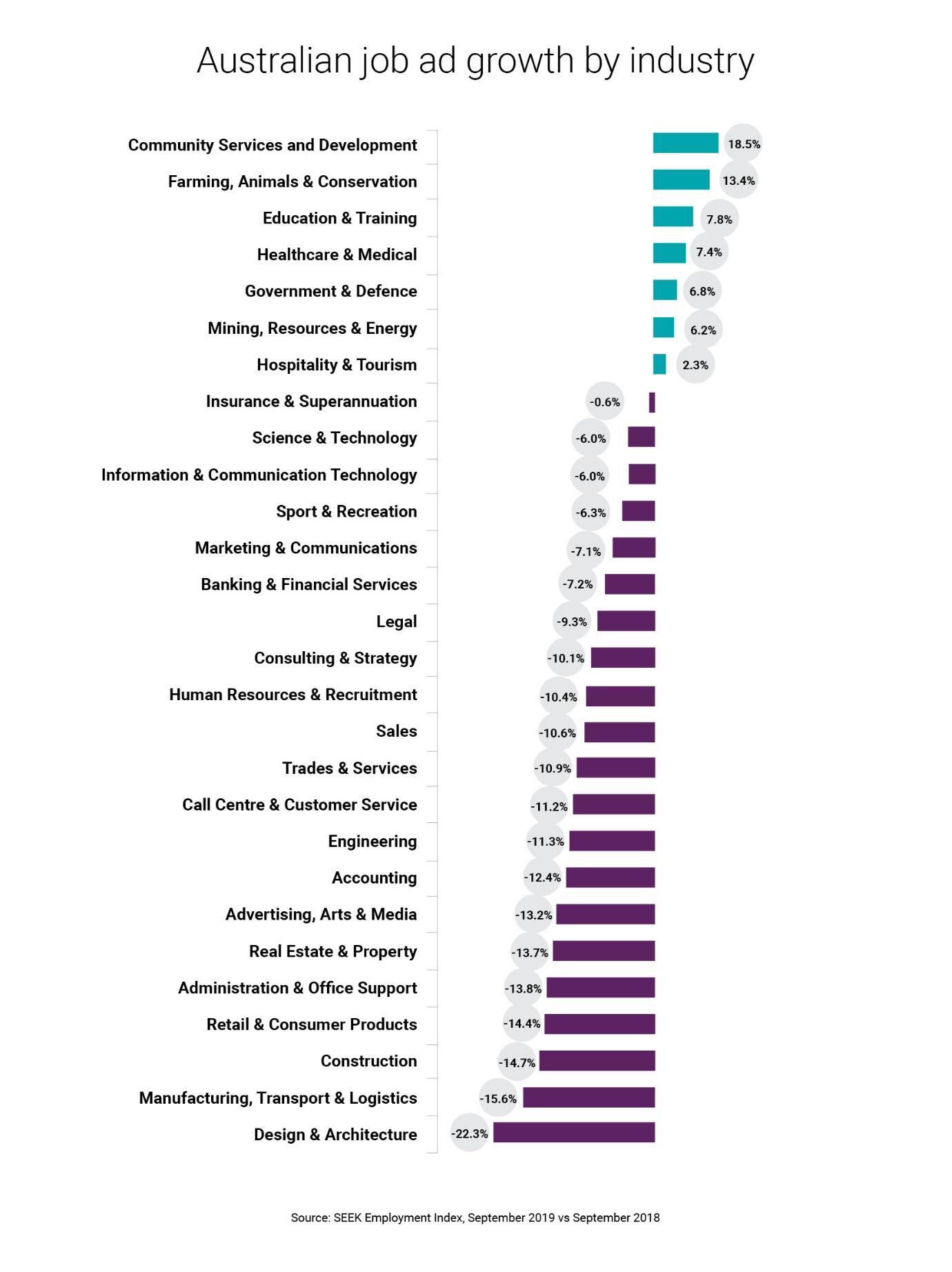 Figure 2 in link below: National SEEK Job Ad growth by industry (September 2019 vs. September 2018)